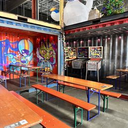 Great place to grab a euro-style beer and some authentic German snacks in the hip River North (RiNo) neighborhood. I visited with a friend on a Saturday, around lunch time, and didn't find it too terribly busy. There's plenty of seating upstairs and downstairs with bars on each level, including a wine tasting bar if you're not into beer. We ordered a dunkel and doppelbock beer, which were spot on! It is definitely a kind of indoor playground with giant sized lawn games, pinball machines, photo booths, and much more. Good for groups and families since there's so much space and plenty to do and eat. They have a private lot but parking is very limited, so come early to snag a spot.